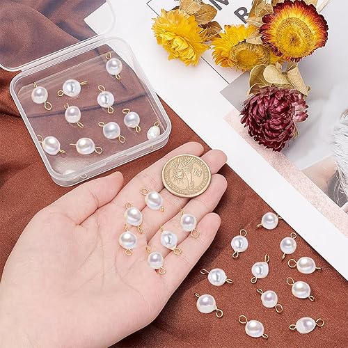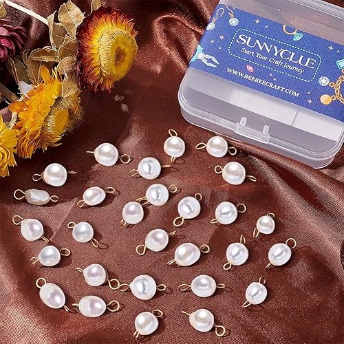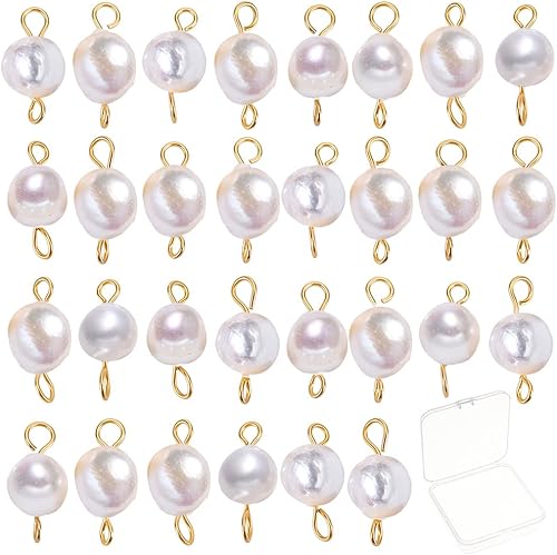 SUNNYCLUE 1 boîte 30pcs Perles de Perles D'Eau Douce Naturelles Liens Connecteurs Perles de Perles Blanches Baroques avec 304 épingles à Œil en Acier Inoxydable pour Femmes Collier Bracelet Boucle D'O