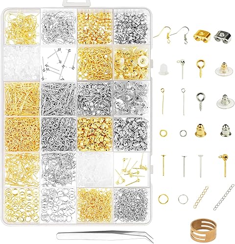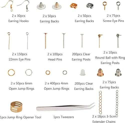 Kit Fabrication de Bijoux, ZoomSky 2416 Pcs Kit Bijoux Création Argent Or Fermoir Bracelet Accessoire de Réparation de Bijoux Pour DIY Boucles d'oreilles Colliers Bracelets