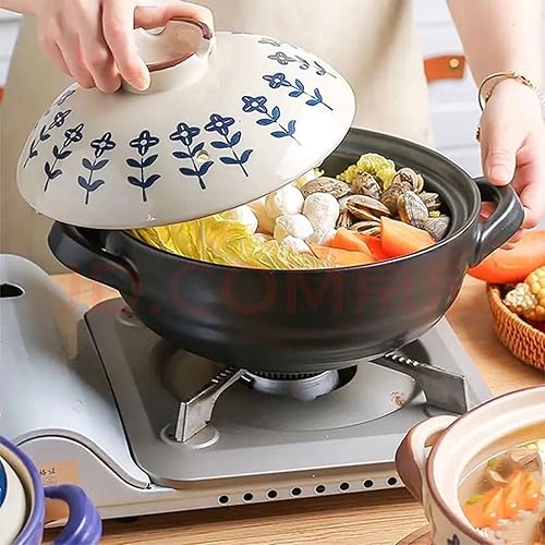 Chfkun Casserole en céramique, Pot en Argile Japonais, Pot de Riz en Pierre Donabe avec Couvercle, marmite en Terre, cocotte en céramique, ustensiles de Cuisine sains, poêle à Soupe, marmite Chaud