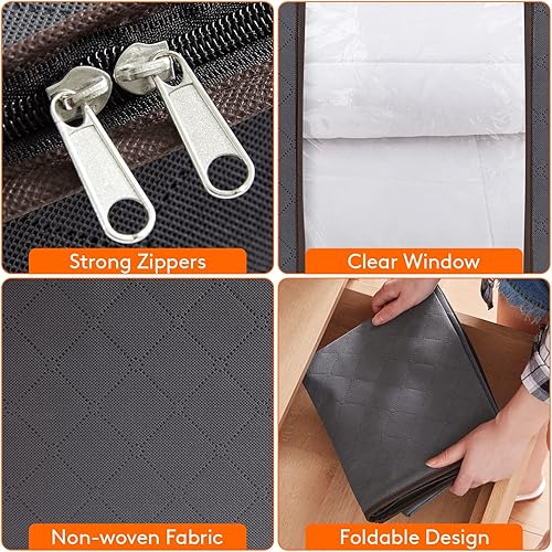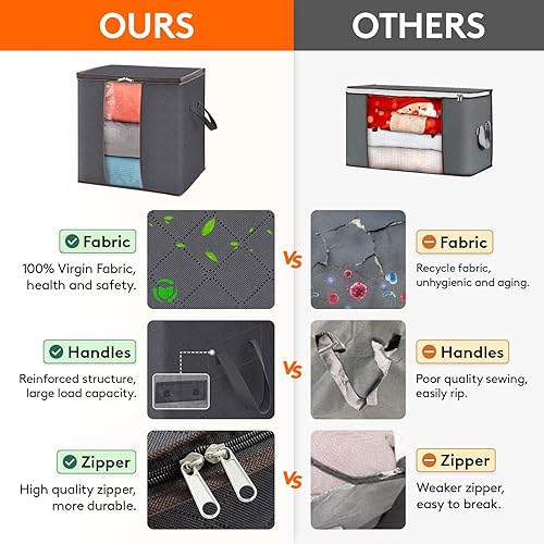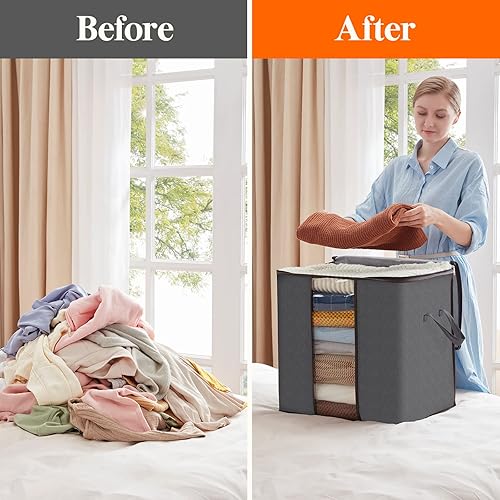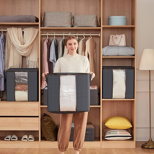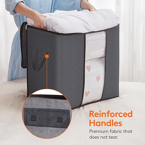Lifewit - Lot de 3 sacs de rangement de grande capacité pour vêtements, avec poignée renforcée, tissu amélioré pour couettes, couvertures, literie, gris, 50 x 36 x 50 cm