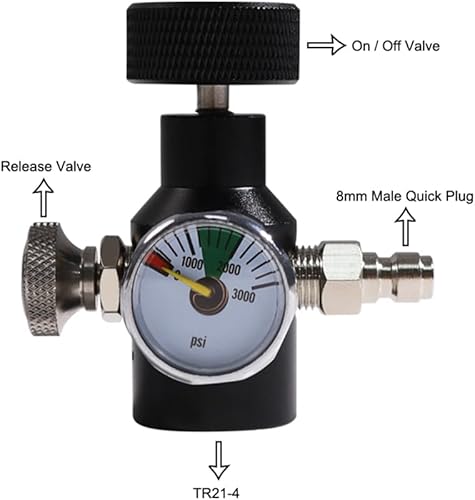 Shovelmty Kit de raccordement pour cylindre de CO2 - Filetage TR21-4 - Adaptateur de recharge de cylindre de CO2 - Avec manomètre de 3000 psi - Noir