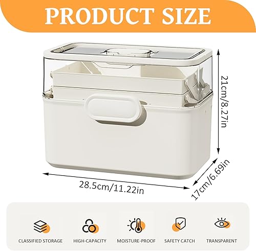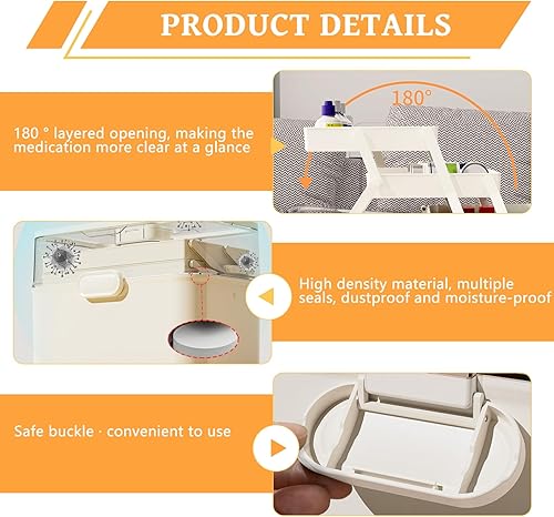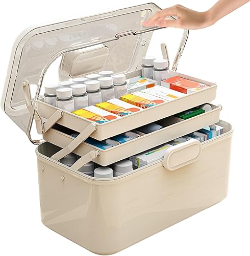 Peosaard Organisateur de médecine à 3 Niveaux, boîte de Premiers Soins avec Boucle sécurité et Plateau Amovible, Armoire à Pharmacie Portable pour Le Bureau et Voyager