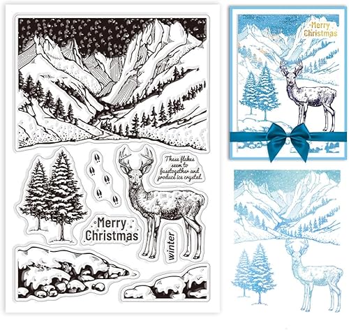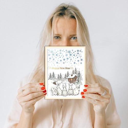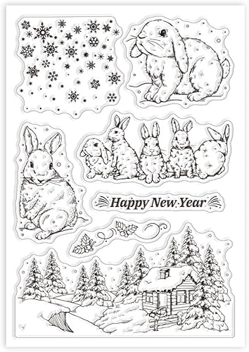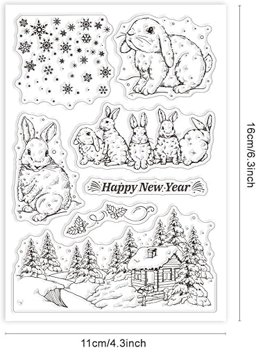 GLOBLELAND Tampons Transparents en Forme de Lapin d'hiver Maison en Bois avec Flocon de Neige Tampons Transparents en Silicone pour Pâques Fabrication de Cartes de Noël