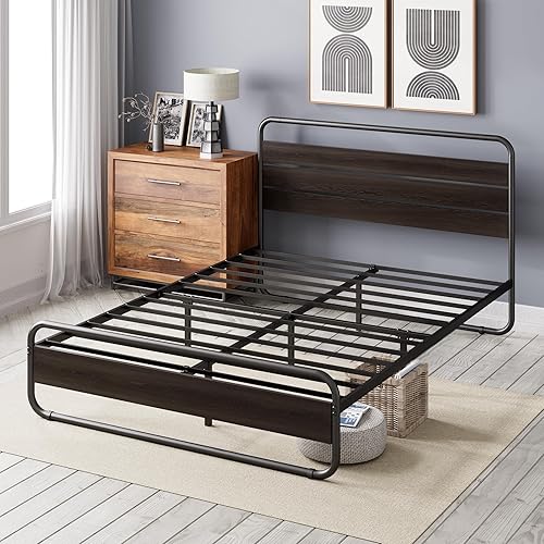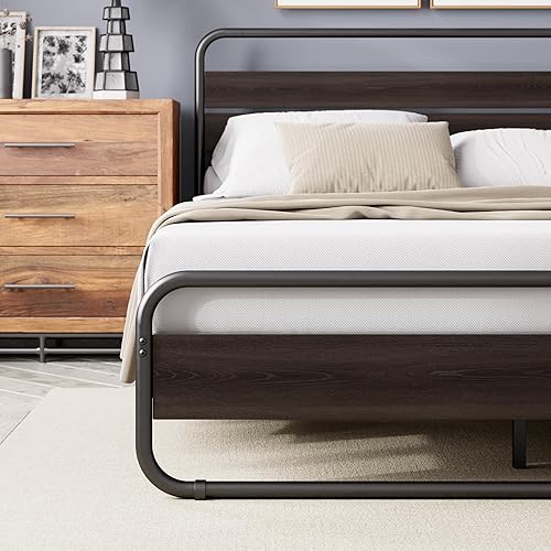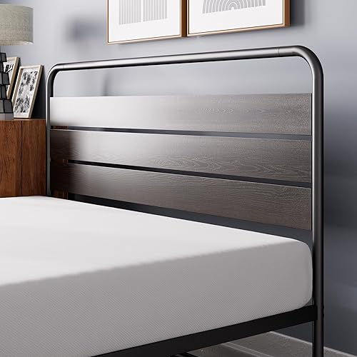 Zinus Soren Lit King 160 x 200 cm - Cadre en Métal et Bois Avec Tête et Pied - 31 cm de Hauteur - Noir