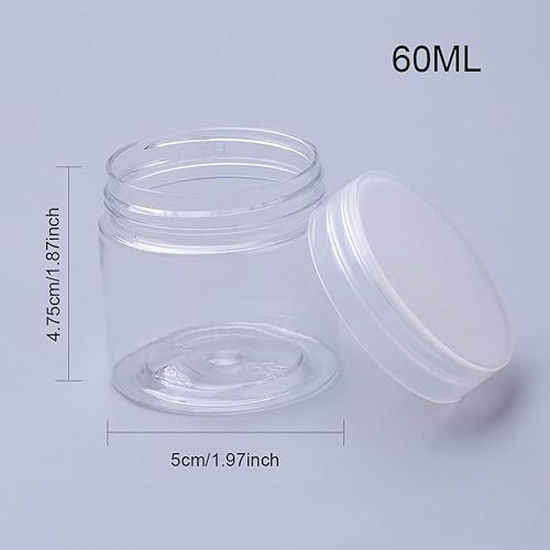 BENECREAT 20 Pack 60ml PET Conteneurs Plastiques à Bouche Large Slime Stockage Bocaux avec Couvercle Transparent et Joint pour Cosmétique Crème Slime Argile Légère