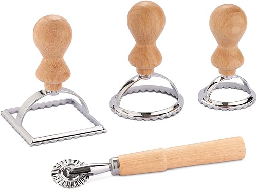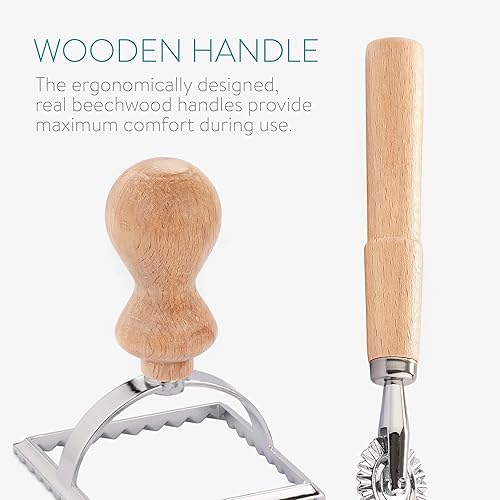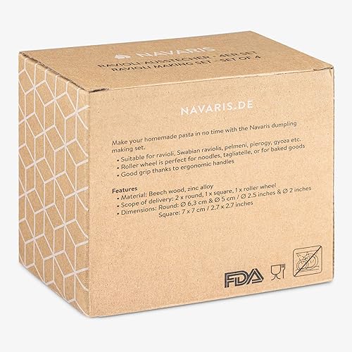 Navaris Set Emporte-Pièce à Ravioli - Ensemble Découpe Ravioles Raviolis Pâtes Gyozas Pierogi - 1x Roulette 3X Moule avec Manche en Bois
