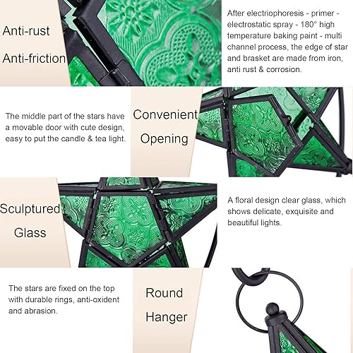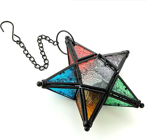 Sziqiqi Chandelier Pentagramme De Vitrail Suspendu, Chandelier en Fer, Décoration De Chandelier De Dîner Aux Chandelles, Multicolore
