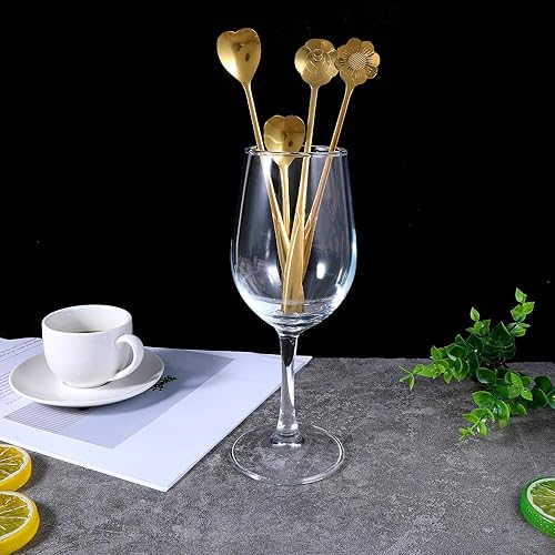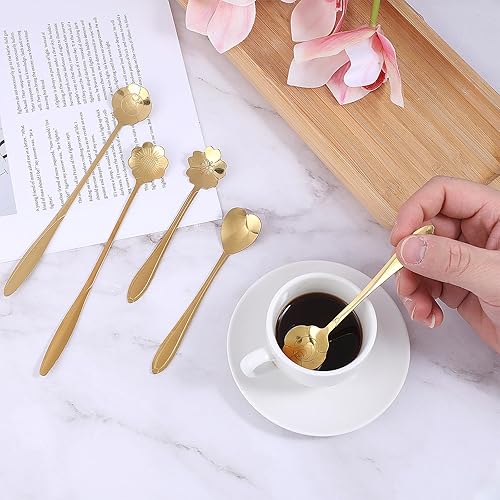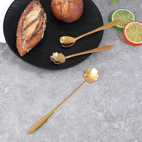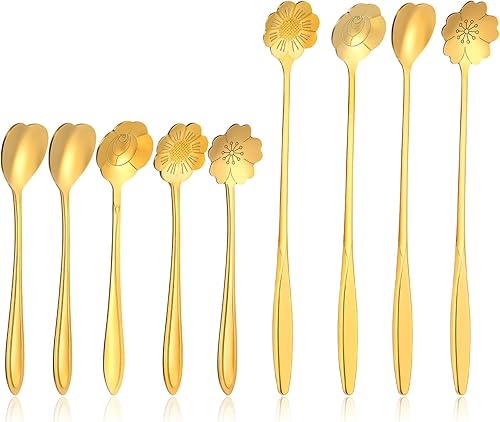 Lot de 9 cuillères à fleurs en acier inoxydable - Cuillères à café créatives - Pour café, thé, gâteau, dessert, glace - Doré