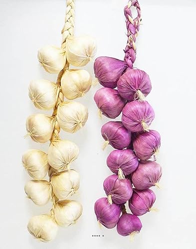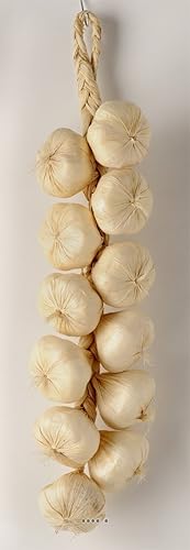 Artif-déco.com - Tresse d'ail Artificielle x10 tetes d ail Blanc L 50 cm