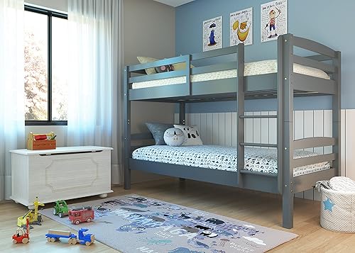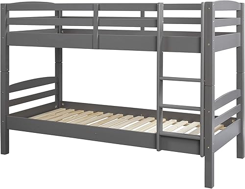 Inter Link – Lit Superposé pour enfants –Bois de pin massif – Avec échelle – 2 couchages 90 x 190 cm – Avec 2 sommiers à lattes – Barrière de sécurité - Rick – Vernis blanc, 90x190cm