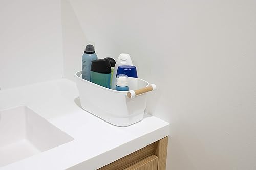 Alpina Panier de rangement - 27 x 14,5 x 12 cm - Plastique - Poignée en bois