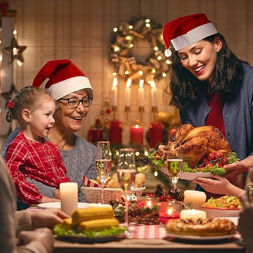 DONGQI 24 Pcs Bonnet de Père Noël Unisexe Rouge - Chapeaux de Noël en Peluche pour Vacances, Festival, Fête