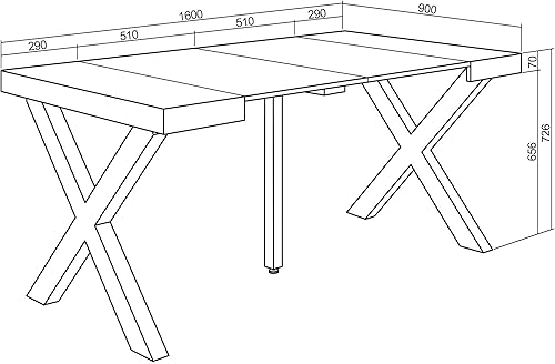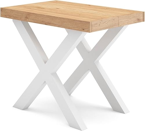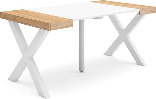 Skraut Home | Table Console Extensible | Console Meuble | 160 | pour 8 Personnes | Pieds Bois Massif | Style Moderne | Chêne et Blanc