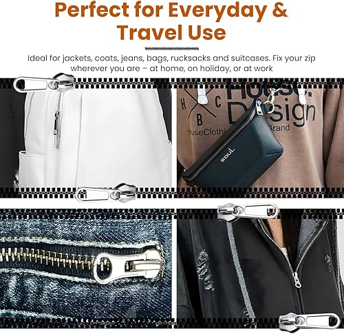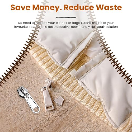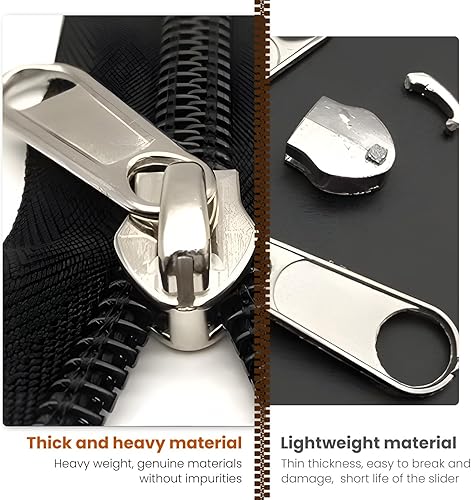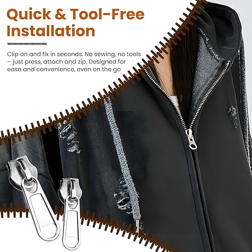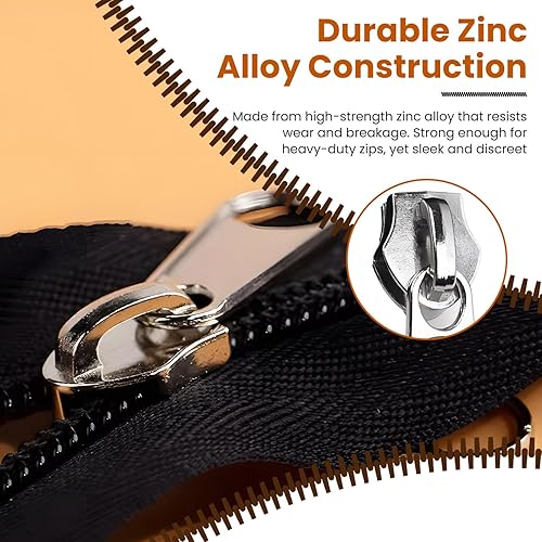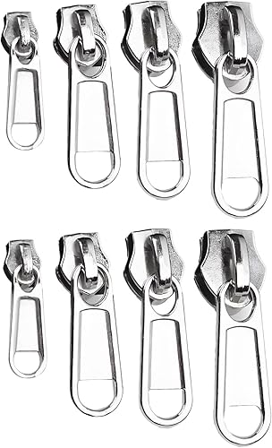 Lot de 8 kits de réparation de fermeture éclair – Tirette de rechange pour fermeture éclair argentée, 2 de chaque taille 3/5/8/10, fermetures éclair robustes pour vestes, jeans, sacs – Ensemble de