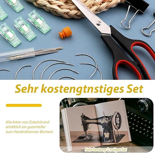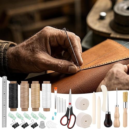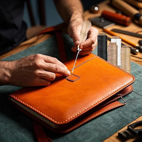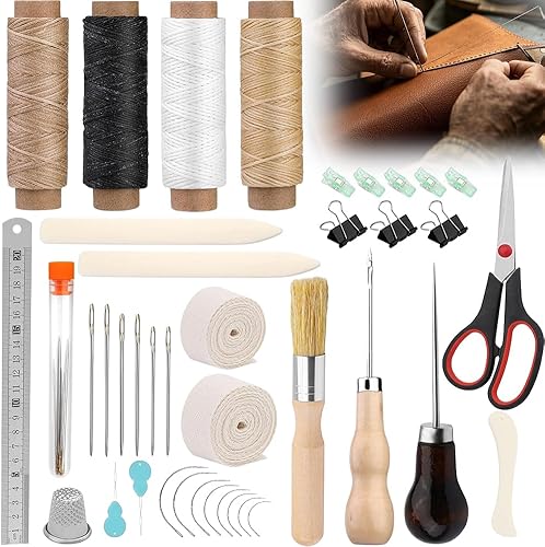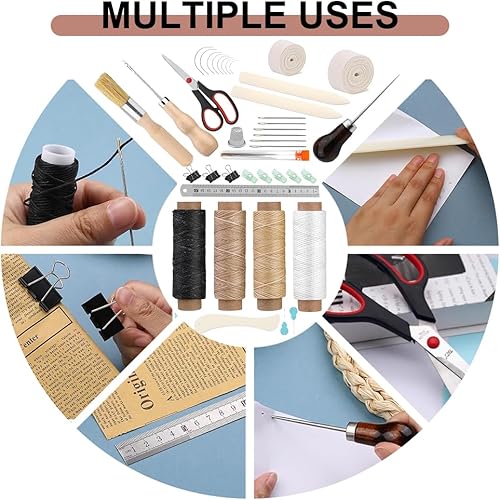 Kit d'outils de reliure de livre 41 pièces - Kit de couture pour cuir - Outils de couture pour cuir - Kit de reliure de livre - Outils de démarrage avec cordon de serrage - Fil ciré - Poinçon - Pour