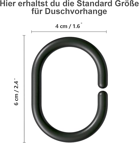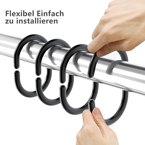 Lot de 48 anneaux de rideau de douche noirs en forme de C pour tringle de douche