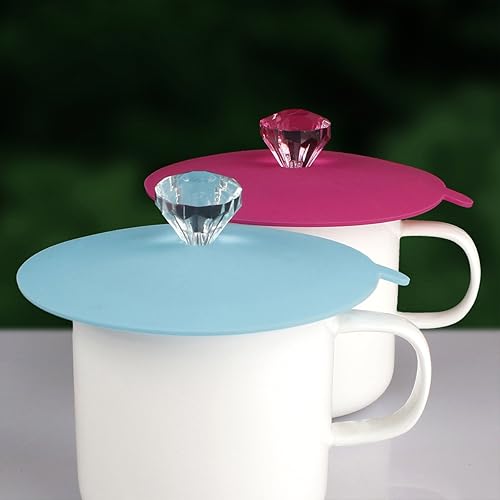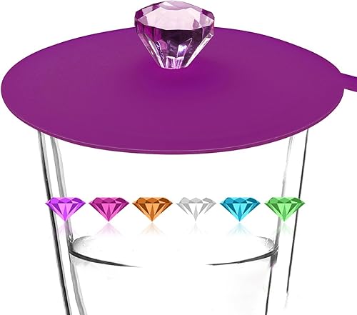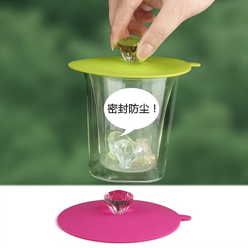 Couvercle de verre en silicone alimentaire de la marque Iphox, anti-poussière, fermeture hermétique, avec diamant de décoration, Silicone, Set of 6 colors, Diamond, Set of 6