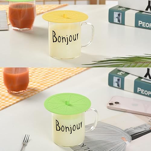 Lot de 4 jolis couvercles de tasse en silicone pour tasse à café en caoutchouc de qualité alimentaire avec fermeture hermétique pour boisson, verre, tasse à café