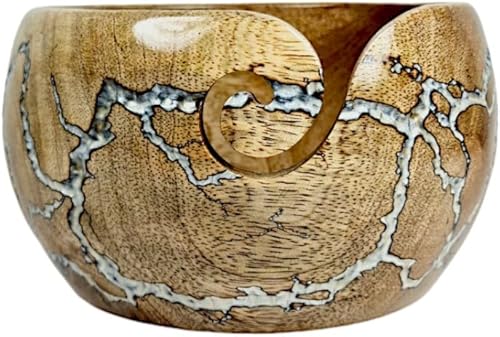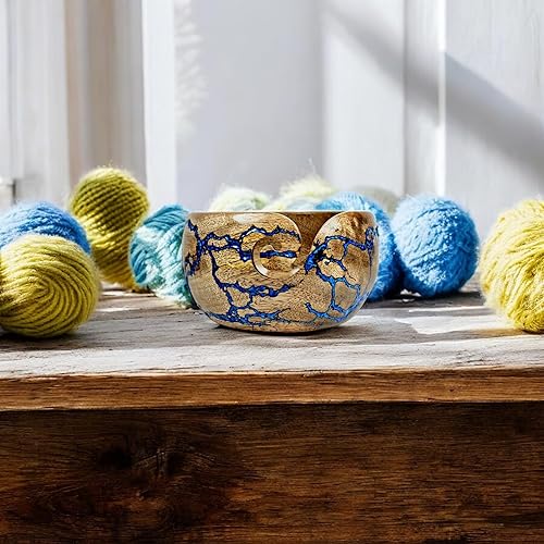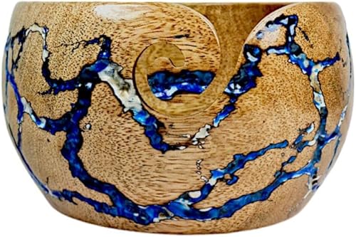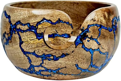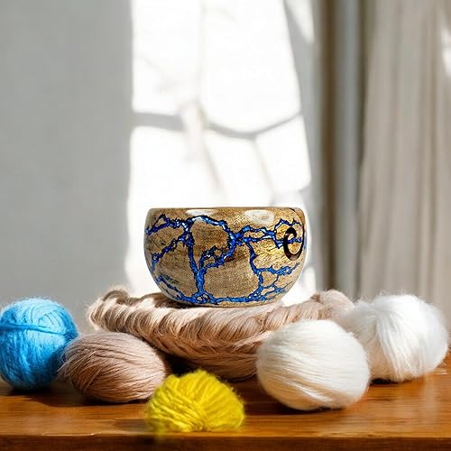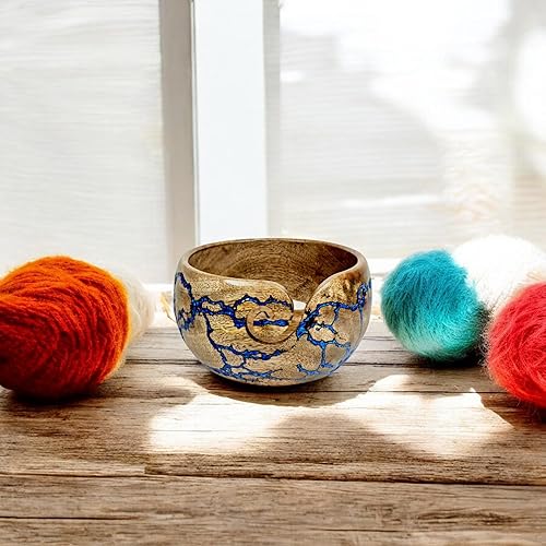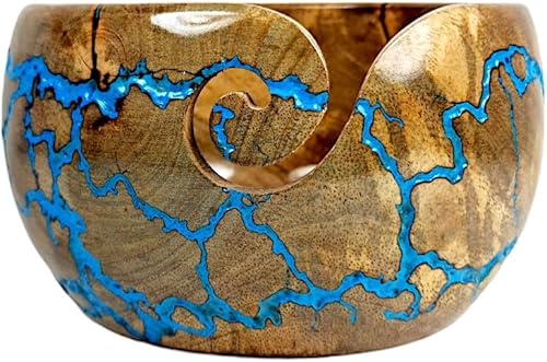 Lumberkart Bol en bois fait à la main – Porte-fil de qualité supérieure pour tricot et crochet sans nœuds (bleu)