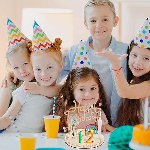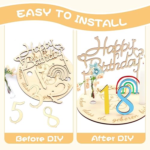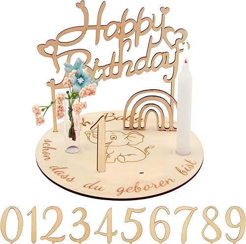 Porte Bougie Chiffre en Bois, Assiette d'anniversaire en Bois Personnalisée avec Bougeoir, Chiffres Arc-en-Ciel 0-9 et Décoration Maison d'anniversaire DIY, Couronne d'anniversaire pour Enfants