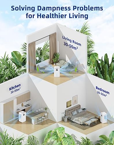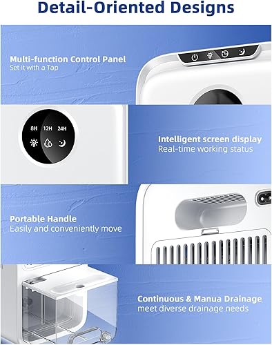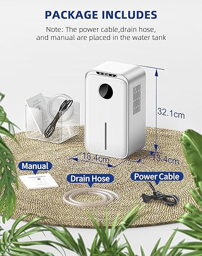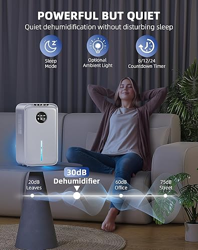 WAROUS Déshumidificateur Electrique Silencieux 2500ML avec Tuyau Auto Drain 24H Sommeil Timer LED 7 Colorées Arrêt Automatique Blanc pour Bain, Chambre à Coucher, Armoire