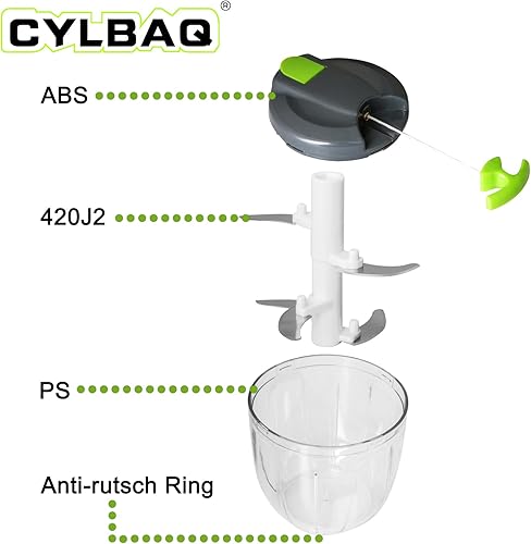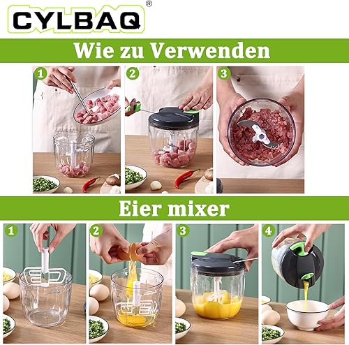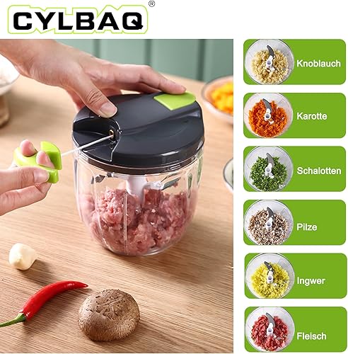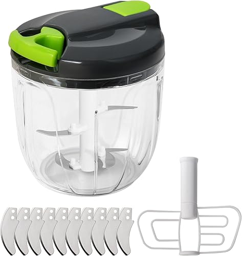 CYLBAQ Hachoir manuel à oignons 900 ml, hachoir à oignons, hachoir à légumes, hachoir manuel avec 10 lames en acier inoxydable et 1 mixeur, hachoir multifonction Onion Chopper