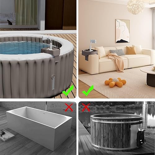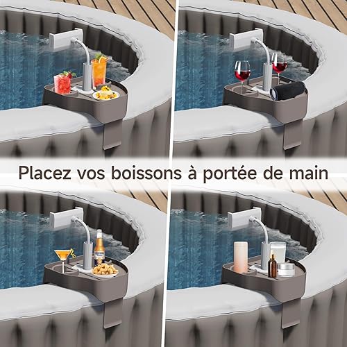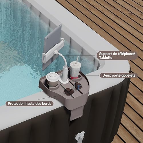 ECO POOLTECH 3 en 1 Réglable Plateau de Spa avec Porte-gobelet et Support de Téléphone, Adapté aux Piscines Gonflables Tablette de Spa, Accessoire pour Spa (Marron)