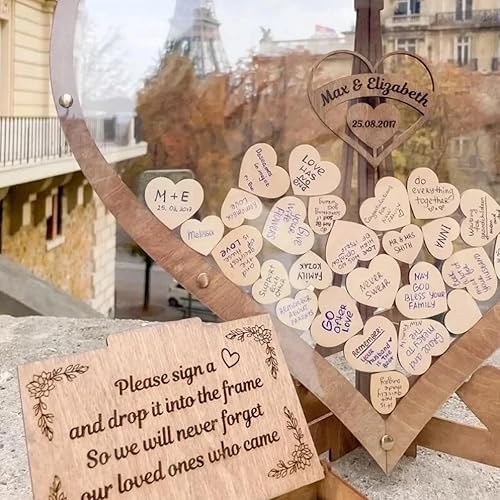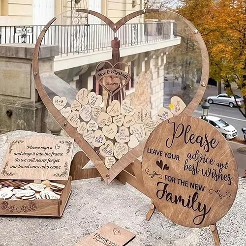 Alternative au livre d'or de mariage personnalisé Livre d'or personnalisé en forme de cœur Boîte d'invités en bois en forme de cœur Signe des visiteurs Fête