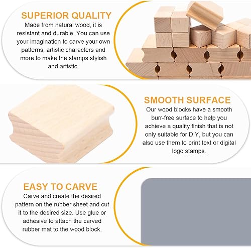 Rebanky 30 Pcs Tampon en Bois dur Vierge, Supports de Tampons en bois dur vierges 2cm/4cm avec Feuille de Tampon en Caoutchouc pour Graveur Laser, Bloc Bois Laser pour L'Artisanat
