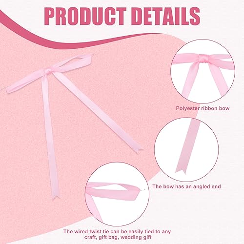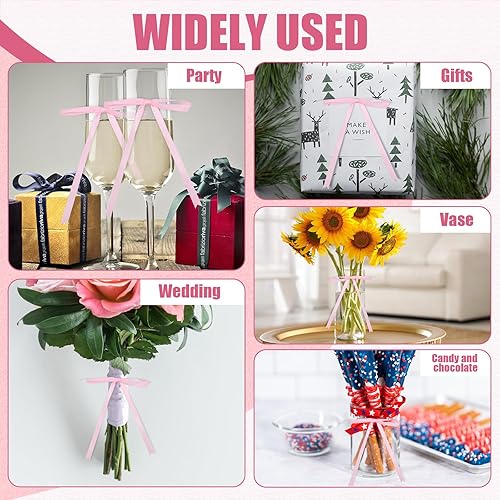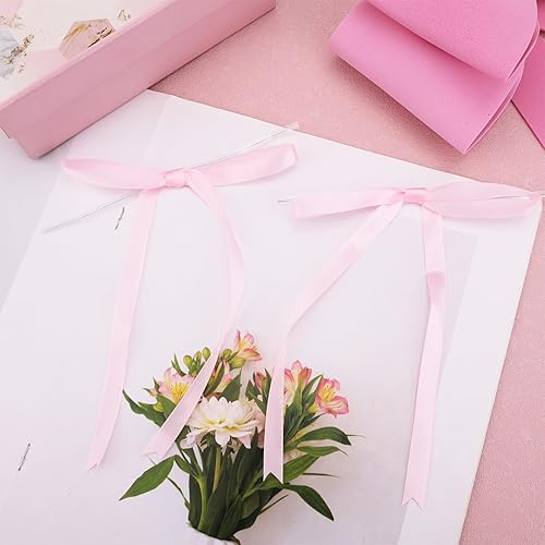 Gosknor 50pcs Nouds en Ruban Rose, 16x13 cm Noeud en Ruban Satin pour Emballage de Cadeaux Gâteaux Friandises Décorations Artisanales Mariage Fête Prénatale Anniversaire