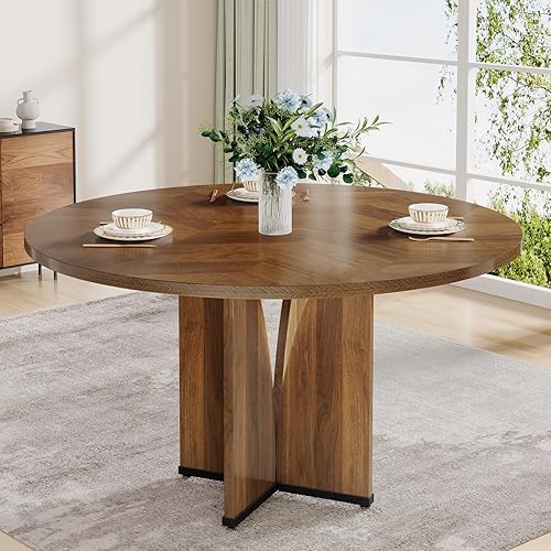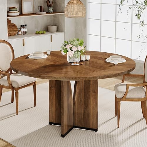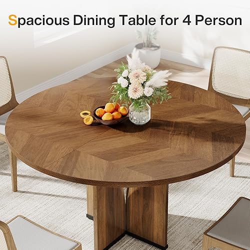Tribesigns Table de salle à manger ronde en bois de 100 cm pour 4 personnes, table de salle à manger rustique avec dessus et pieds en bois, table de salle à manger marron rustique pour salle à manger,