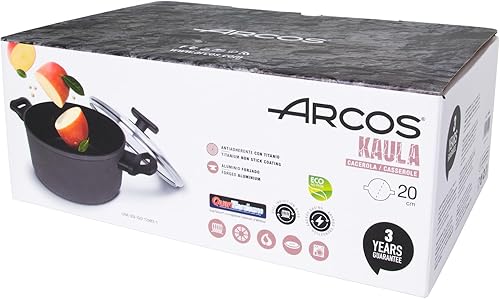 Arcos Série Kaula | Casserole Anti-adhésive | Aluminium Forgé | Revêtement QuanTanium | Compatible tous feux | Poignée à effet froid | Économie d'énergie | Va au lave-vaisselle | Couleur noire (28 cm)