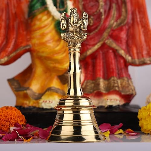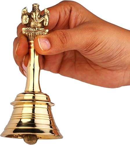 Cloche à main en laiton fait à la main Ganesh Cloche Pooja pour mariage, événements (13 cm)