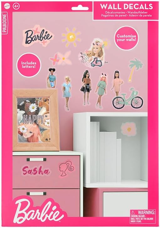 Paladone Autocollants Muraux Barbie - Officiellement Licenciés, Stickers Réutilisables pour Chambre d'enfant, Comprend Amis, Lettres, Vêtements & Accessoires, Décor de Chambre Filles