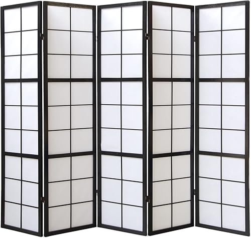Homestyle4u Paravent intérieur Pliable 220 x 175 cm 5 pan Bois Noir Shoji en Papier de Riz