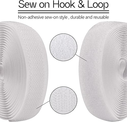 Bande Velcro à coudre - 16 mm x 3 m - En nylon - Fermeture Velcro pour couture - Bande velcro et crochet - Blanc