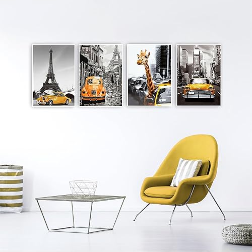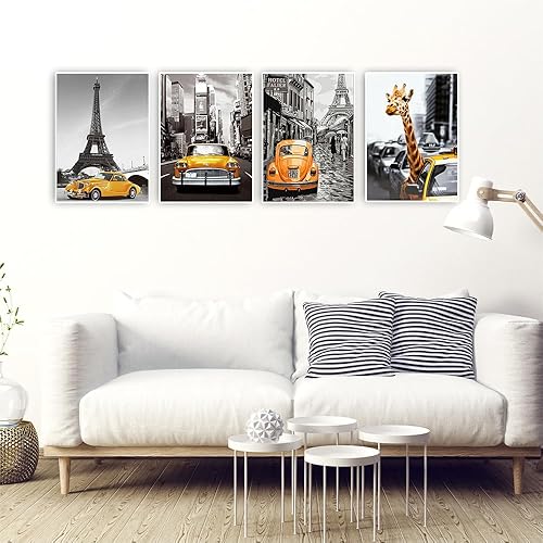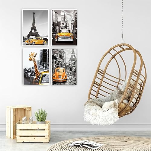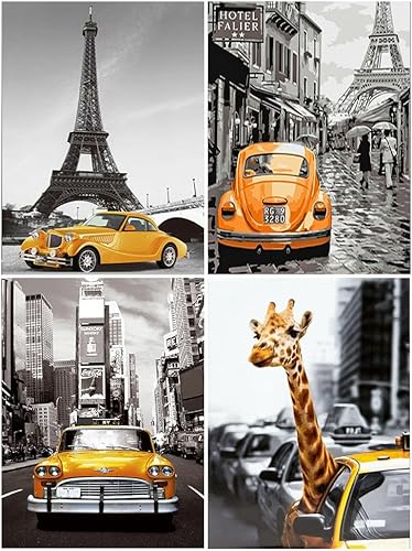 DCIDBEI 30x40CM DIY 4 Lot Peinture Diamant Paysage Gris Jaune, Kit De Point De Croix Diamant Ville, 5D Rond Diamond Painting Voiture, Salon Entrée Chambre Décoration Autocollant Mural