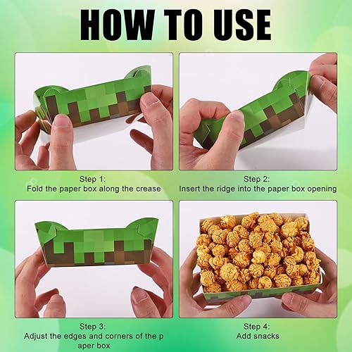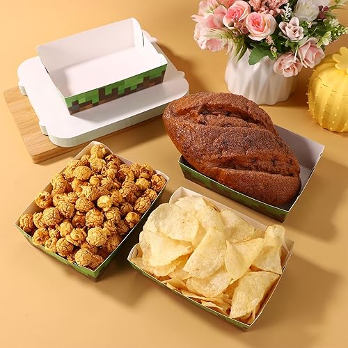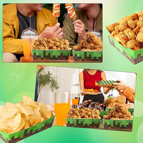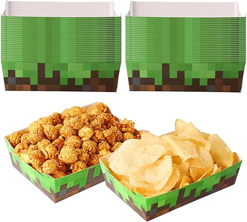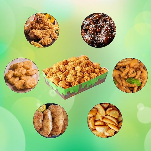 BOXOB 50pcs Plateaux Nourriture Fête, Plateaux Miner Marron Vert Assiettes Papier Présentation Stockage Collations Alimentaires Fournitures Anniversaire Cadeaux Fête Thème Mineur Vert