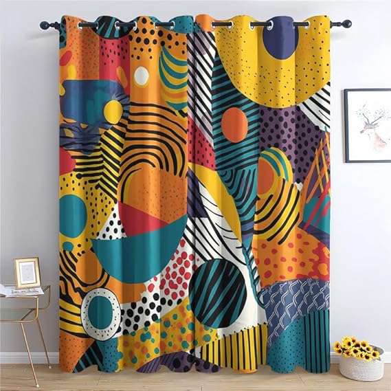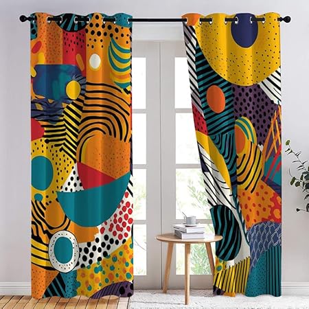 zcwl Rideau Occultant Coloré Géométrique, Motif Rideaux Thermiques à Oeillets, Rideaux Imprimé pour Salon Chambre Fenetre Moderne Décoration, 140x200 cm (L x H), Lot de 2