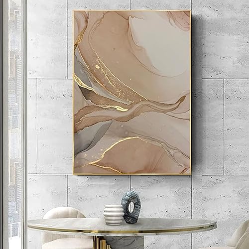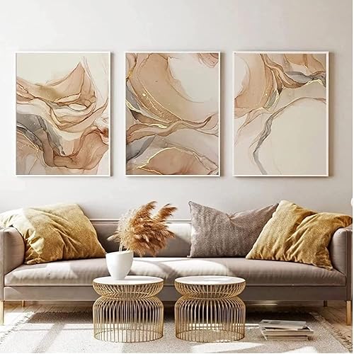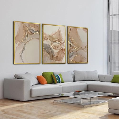 HEHGVCF Lot de 3 Tableaux sur Toile Marbré Beige Doré - Décoration Murale pour Salon - Poster Sans Cadre (50 x 75 cm)