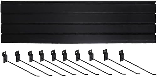 DGAMHF Étagère De Rangement Panneau À Lattes, Support Mural Robuste en PVC avec 10 Crochets, Panneaux Muraux À Lattes Imbriquées, Étagère De Rangement Murale for Garage(Black/2pcs,120x31cm)