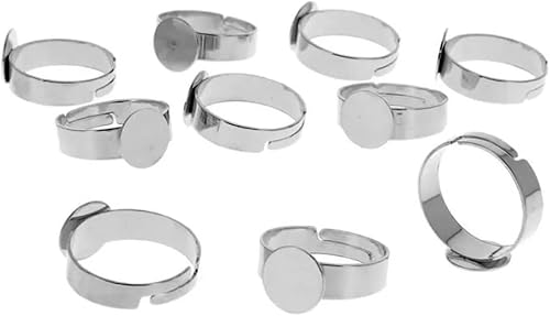 HQ-CLOUD Lot de 10 Support Bague Réglable,Anneau Plateau Bague, Cabochon Plateaux de Bague Rond pour Création de Bijoux