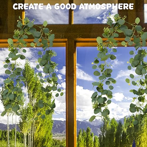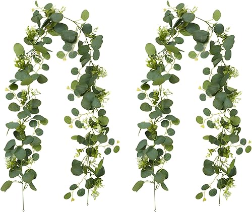 JazRvr Lot de 2 guirlandes d'eucalyptus artificielles de 180 cm pour arches de mariage, décoration de table, guirlande de fleurs, eucalyptus pour fête et maison