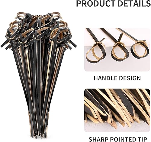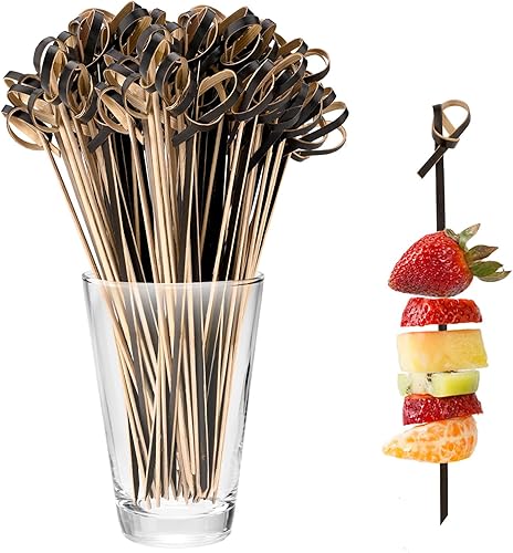 Bekecidi Lot de 100 Mini Pics à Cocktail en Bambou pour Boissons, Canapés, Apéritifs, Fournitures de Fête, 12 cm (Noir)