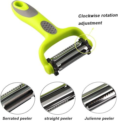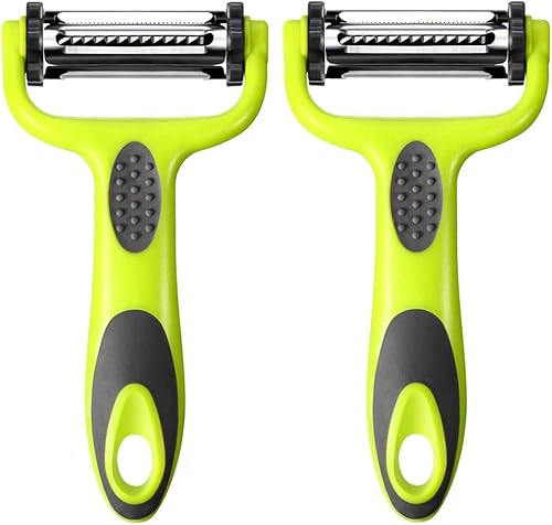 Aiqeer 2 Pièces Éplucheurs Multifonction 3 en 1, Éplucheur de Légumes, Éplucheur de Fruits, Éplucheur Pivotant, Éplucheur Rotatif, Éplucheur de Carottes, Éplucheur de Pomme de Terre (Vert)
