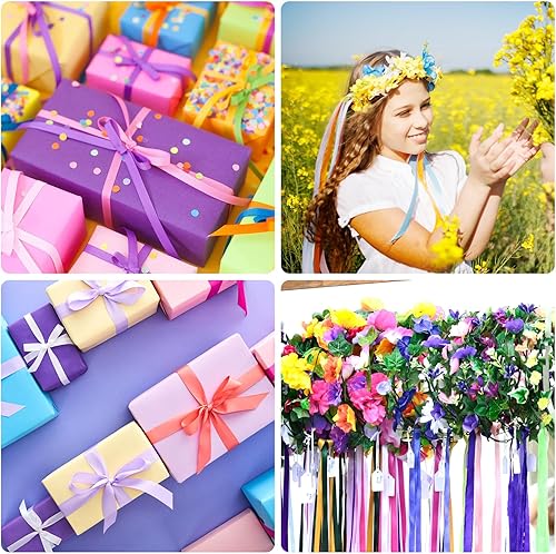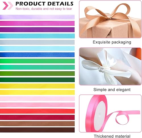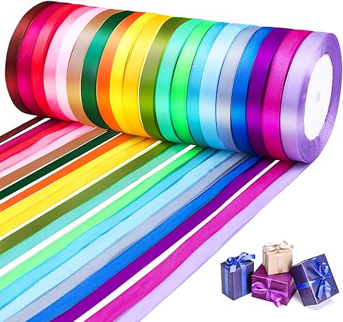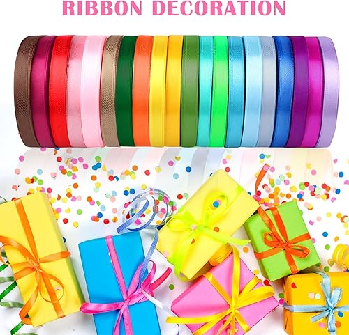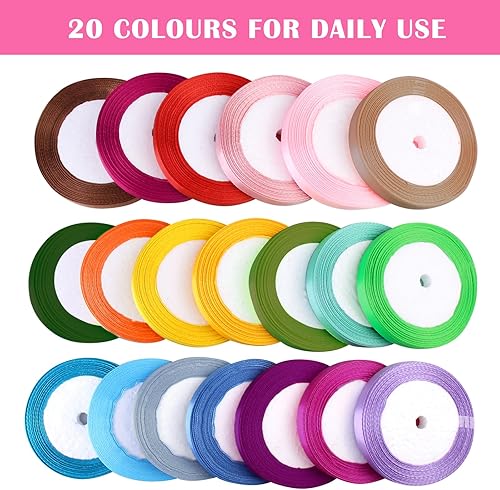Vegena 20 Couleurs Ruban Satin, 10mm x 22m - Polyester, Satin - Blanc, Bleu, Jaune, Rouge, Vert - Uni - Occasions Spéciales - Emballage, Décoration de Mariage, Ballons, Nœuds, Artisanat