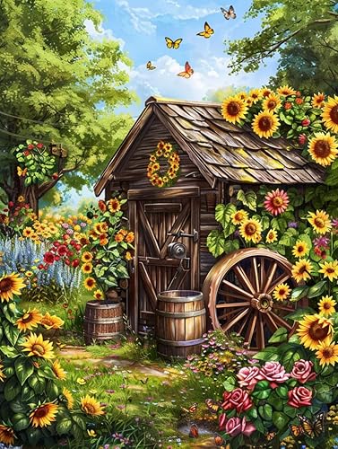 Kits De Broderie De Perles De Rocaille Bricolage Kit De Broderie De Perles De Forêt De Fleurs Kits De Point De Croix De Paysage Fantastique Kits De Broderie Estampillés Pour Adultes Art Mu 30x40cm