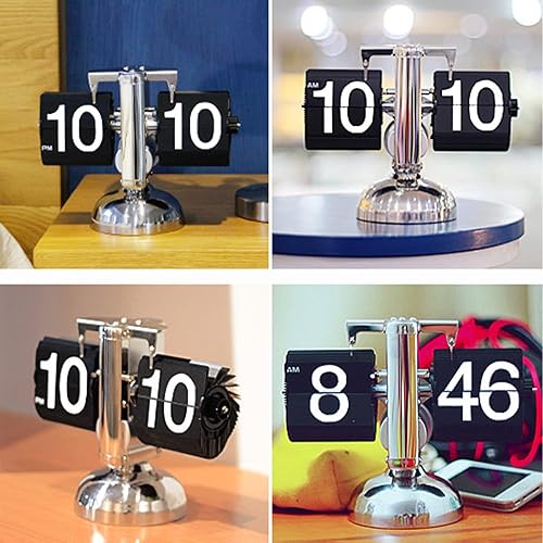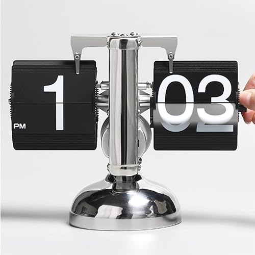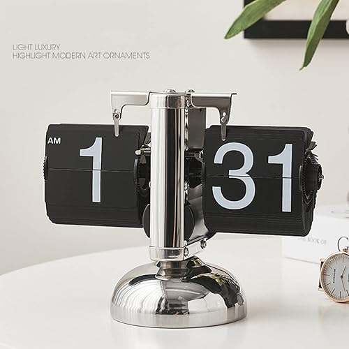 Pissente Horloge de Bureau Rabattable de Style Rétro, Horloge de Table Rabattable, Horloge Numérique Rabattable, Horloge Mécanique à Bascule Automatique Rétro Minimaliste à Une Jambe,