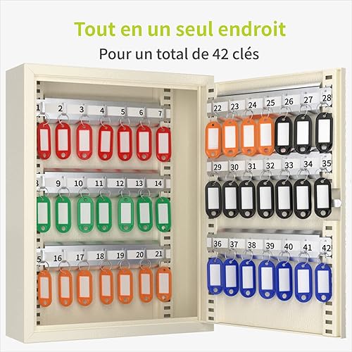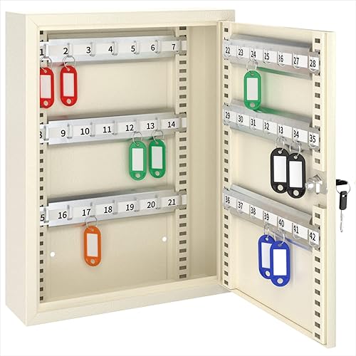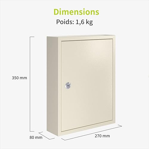 ACROPAQ - TS42 Boite à clefs - Crochets réglables, Verrouillable, avec 2 clés, pour l'extérieur - Armoire a Clef, Placards à clés - Blanc