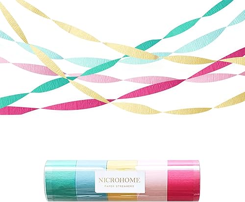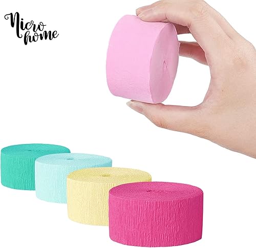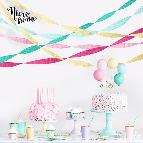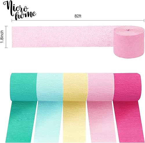 NICROHOME Unicorn Party Decorations-5 Rolls Mint Green Light Sky Blue Yellow Pink Rose Red Crepe Paper 82 ft Long Party Streamers for Wedding,Baby or Bridal Shower, Bachelorette Party, Birthday Decor